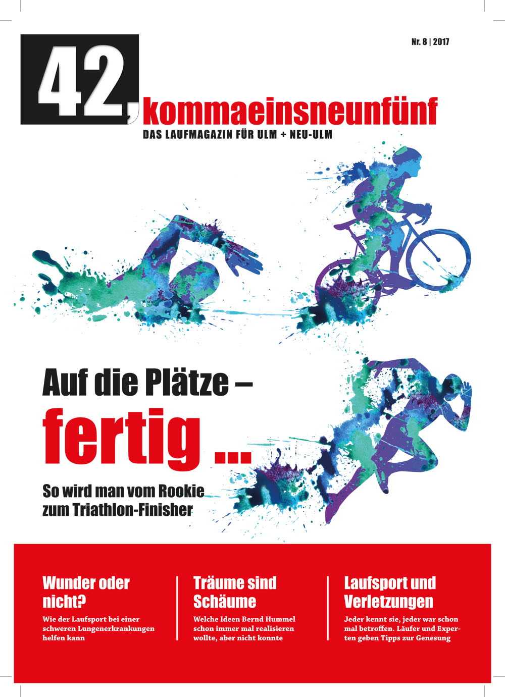 Druckfrisch gefertigt und ausgeliefert von der Ulmer Druckerei Schirmer liegt es ab diesem Wochenende an über 100 öffentlichen Stellen in Ulm, Neu-Ulm und der Region aus. Titelgeschichte ist die Sammlung von Bernd Hummels unvollendeten Ideen. Dazu gibt es eine Reihe von Beispielen für typische Läuferverletzungen und wie sie behoben worden sind. Auf Anfrage kann das Laufmagazin auch verschickt werden.