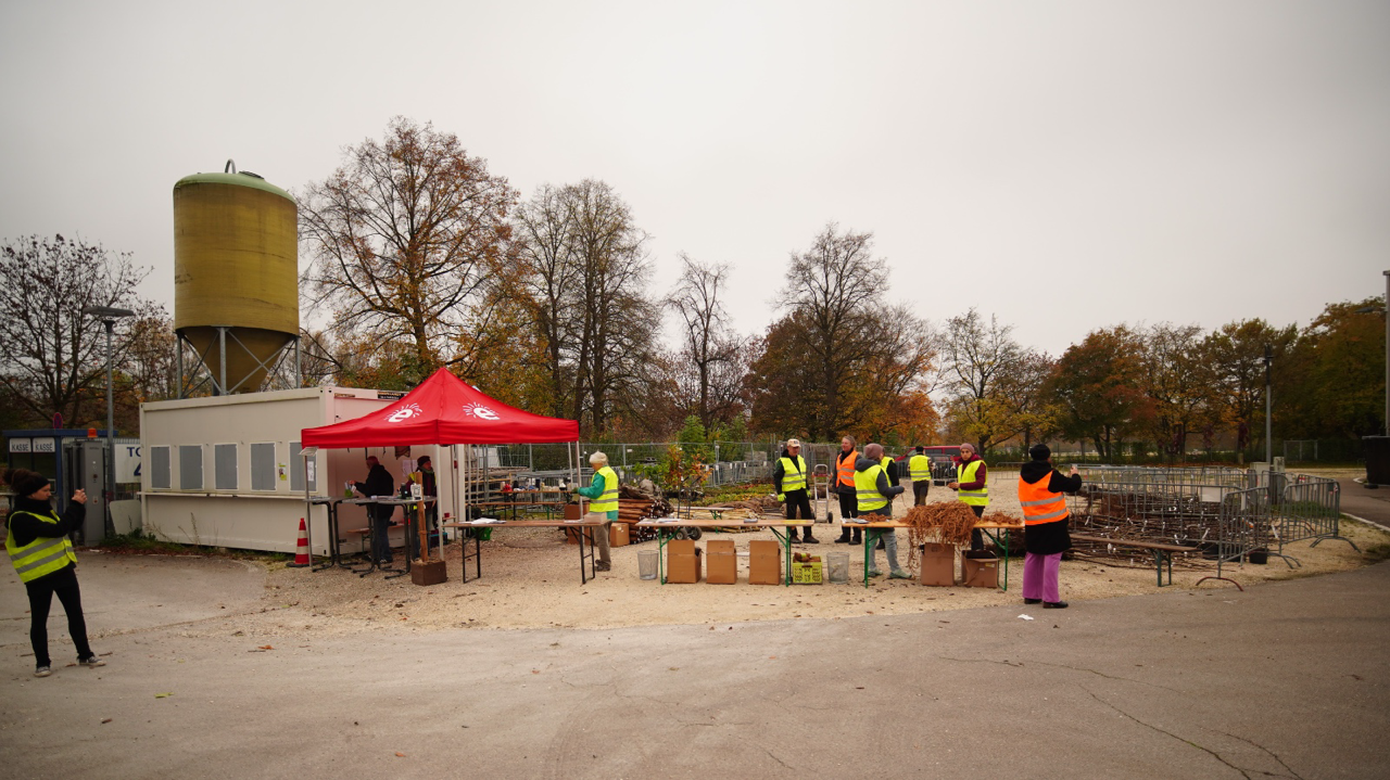 Viele freiwillige Helfer aus Illerkirchberg folgten dem Aufruf und kamen mit Spaten und Eimer an die Sporthalle. Zum Dank gab es hinterher ein kleines Frühstück für alle.